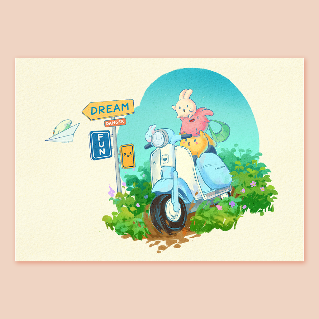 Scooter Bunnies Art Print